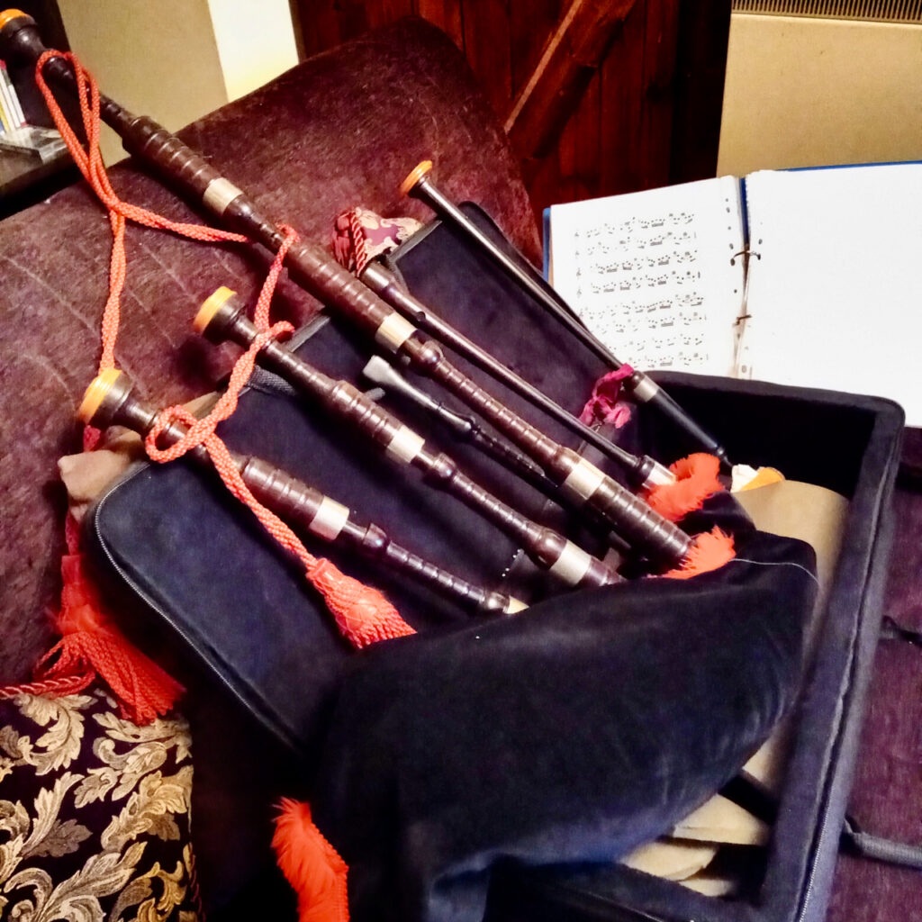 We learn at first on a practice chanter (rather like a recorder) maybe progressing onto the great Highland bagpipe later.